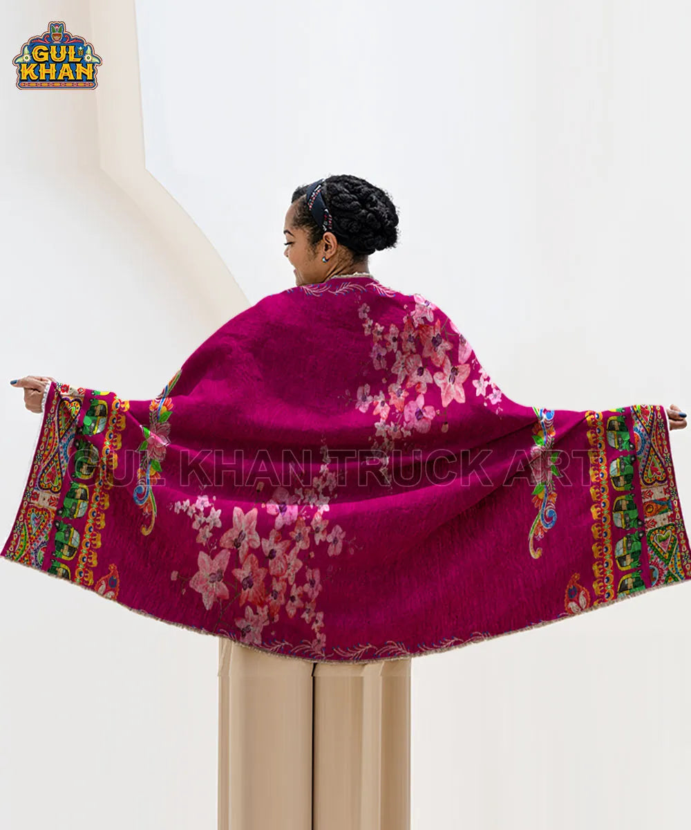 Pink Motif Printed Truck Art Shawls
